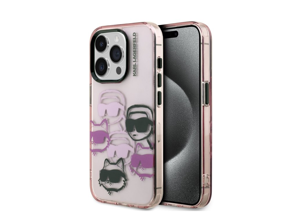 Karl Lagerfeld IML Multi K&CH Heads zadní kryt pro iPhone 15 Pro – růžová
