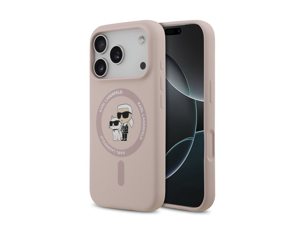 Karl Lagerfeld Liquid Silicone Karl and Choupette MagSafe zadní kryt pro iPhone 17 Pro – růžová