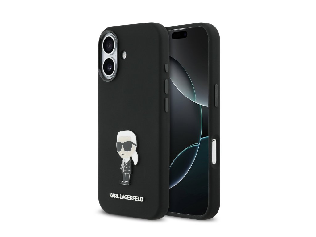 Karl Lagerfeld Liquid Silicone Metal Ikonik zadní kryt pro iPhone 17 – černá
