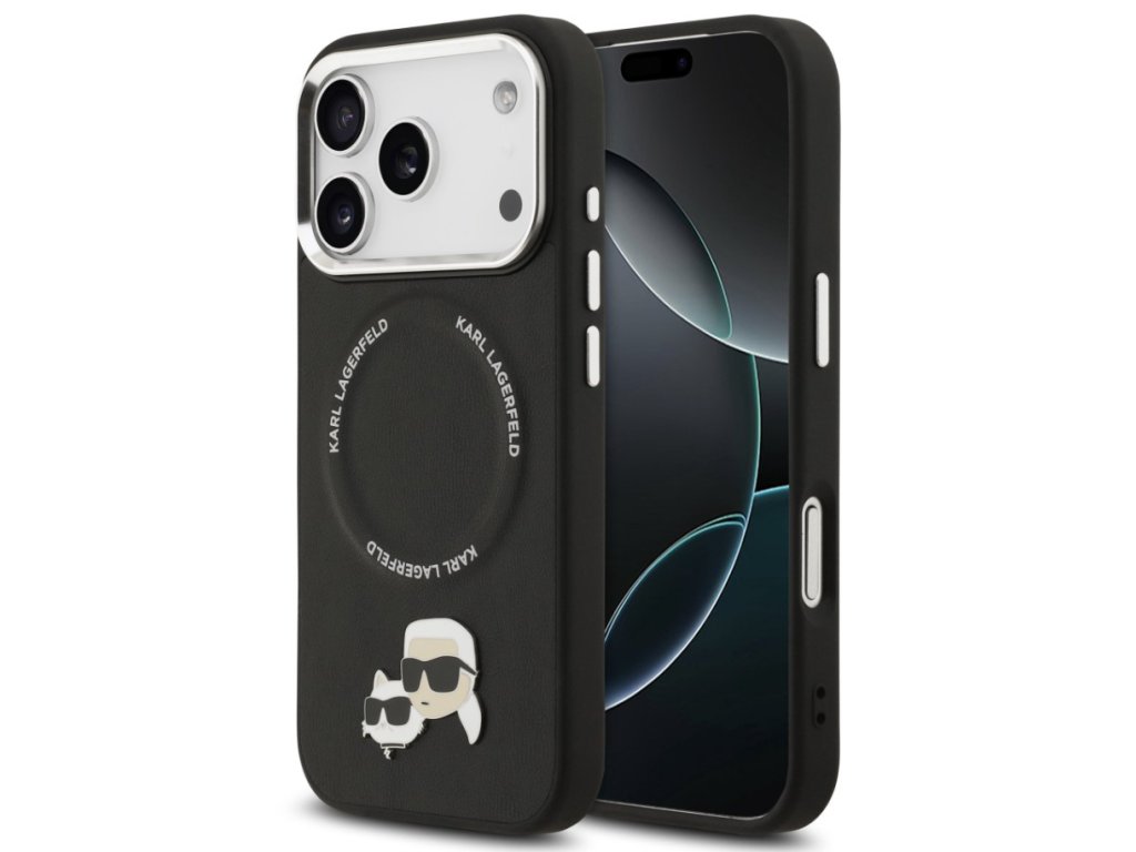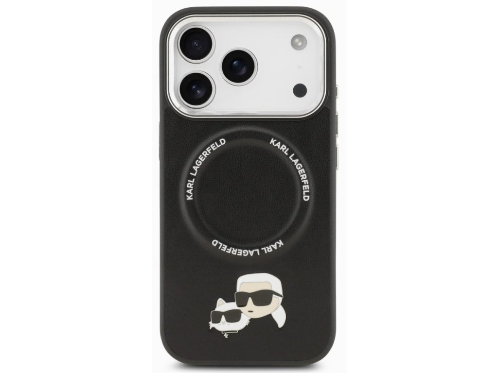 Karl Lagerfeld zadní kryt pro iPhone 17 Pro, PU K&Ch Heads Pins MagSafe - černá