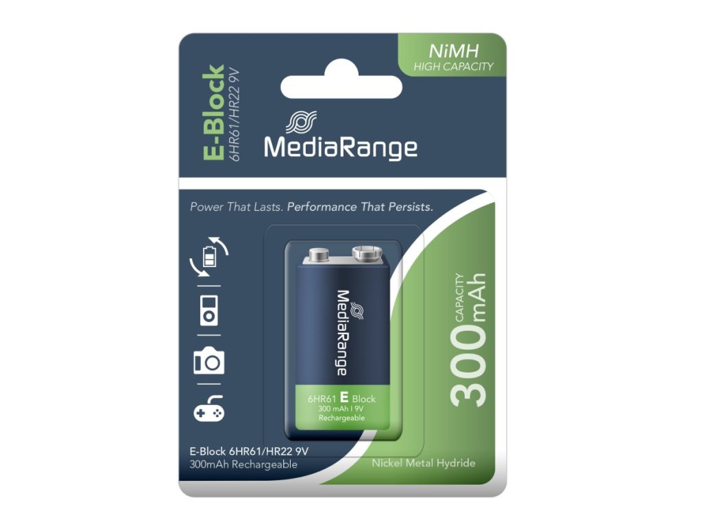 MediaRange High capacity nabíjecí baterie E-Block, 6HR61/HR22, 9V