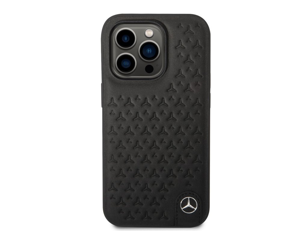 Mercedes Genuine Leather Star Zadní Kryt pro iPhone 14 Pro Black