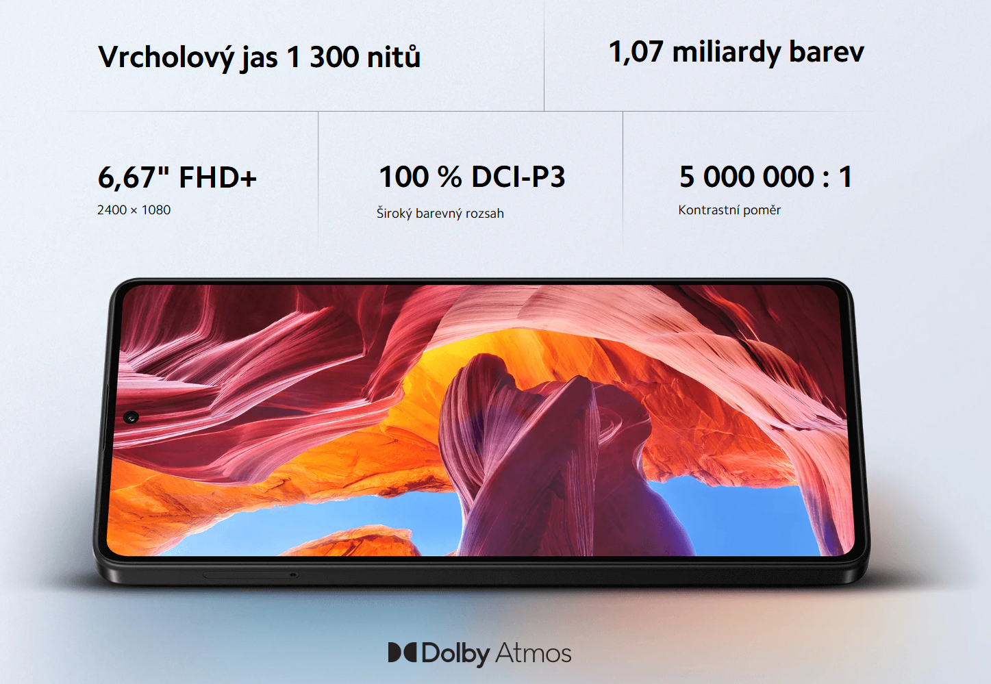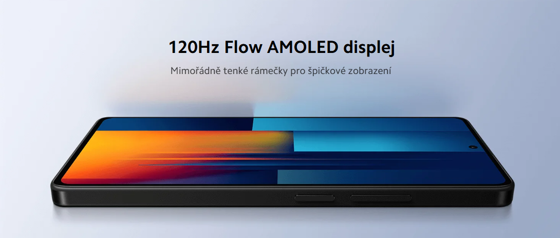Dominantním prvkem Poco M6 Pro je jeho Flow AMOLED displej s mimořádně tenkými rámečky, který vytváří pohlcující obrazový zážitek při každém použití. Díky vysoké obnovovací frekvenci je obraz znatelně plynulejší při posouvání obsahu, hraní her i běžném ovládání systému. Displej vyniká sytými barvami, vysokým kontrastem a velmi dobrou čitelností, což oceníte při sledování videí, práci s obsahem i každodenním používání.