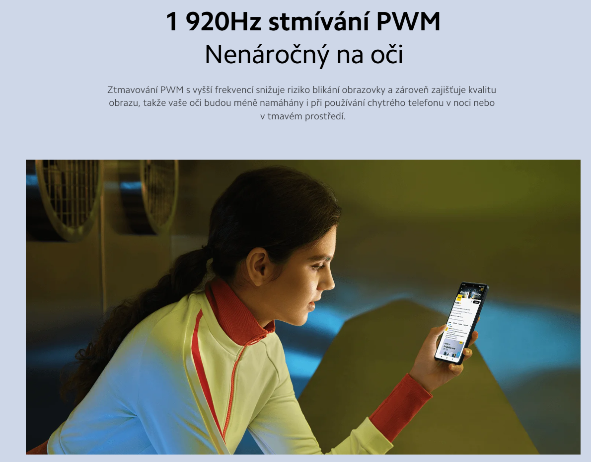Obrazovka je navržena s důrazem na komfort zraku a dlouhodobé používání. Podpora pokročilých technologií omezuje blikání a snižuje zátěž očí při práci ve tmě i při delším sledování displeje. Certifikace zaměřené na ochranu zraku potvrzují, že Poco M6 Pro myslí nejen na výkon, ale i na zdravější každodenní používání.