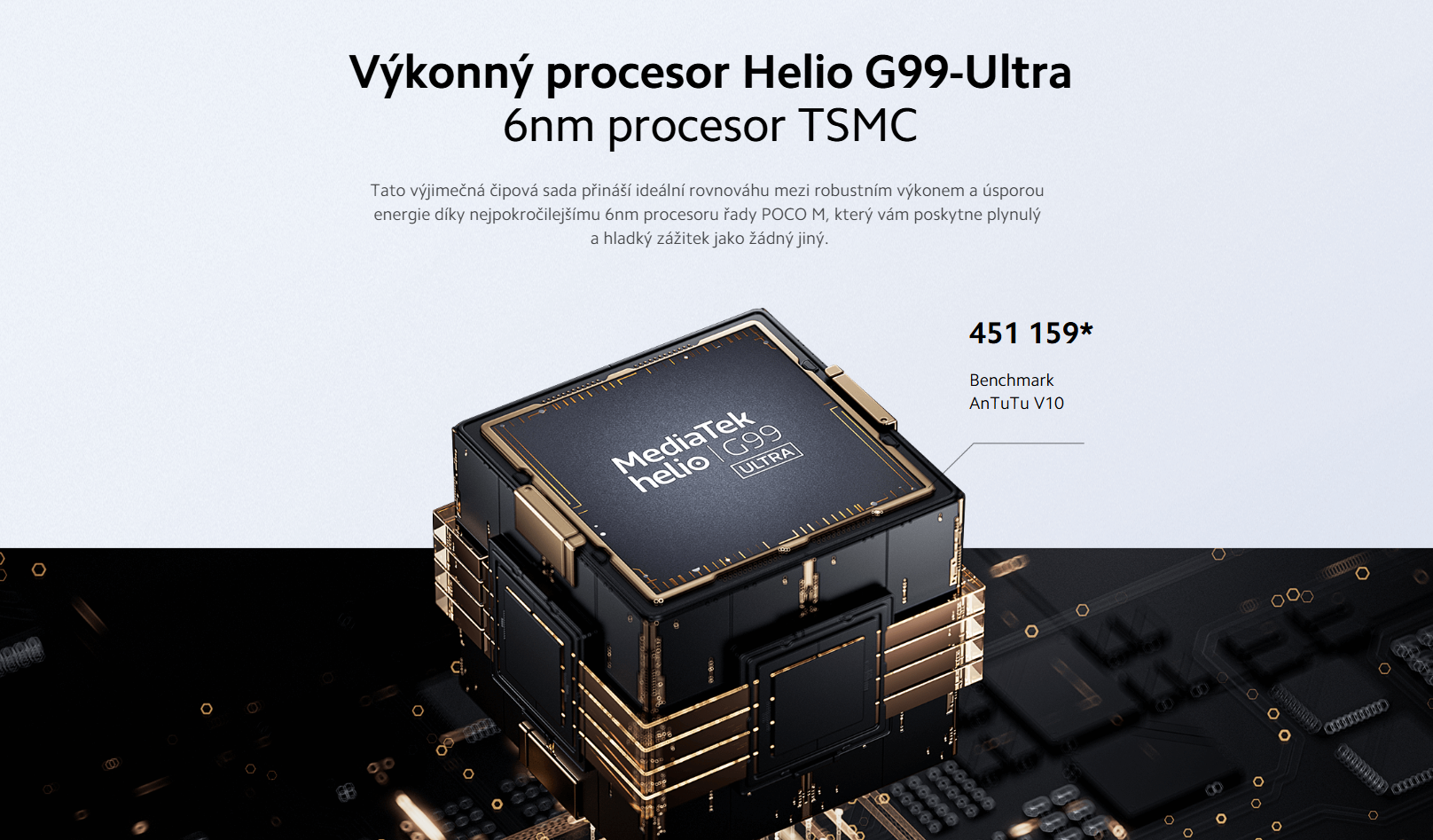 Telefon staví na moderní a energeticky efektivní platformě, která je optimalizována pro plynulý chod systému, rychlé reakce a stabilní multitasking. Ve spojení s aktuálním systémovým prostředím poskytuje Poco M6 Pro vyvážený výkon vhodný pro každodenní práci, zábavu i náročnější aplikace, aniž by působil zpomaleně nebo nevyrovnaně.