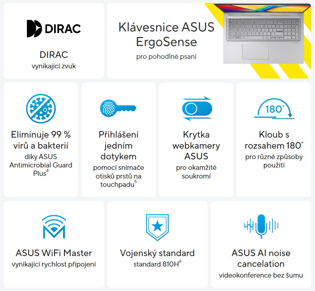 ☝ Kamera na notebooku není funkční, což nemá vliv na běžné používání. Díky tomu je cena extra výhodná – ideální volba pro ty, kteří kameru nevyužívají nebo chtějí ušetřit.