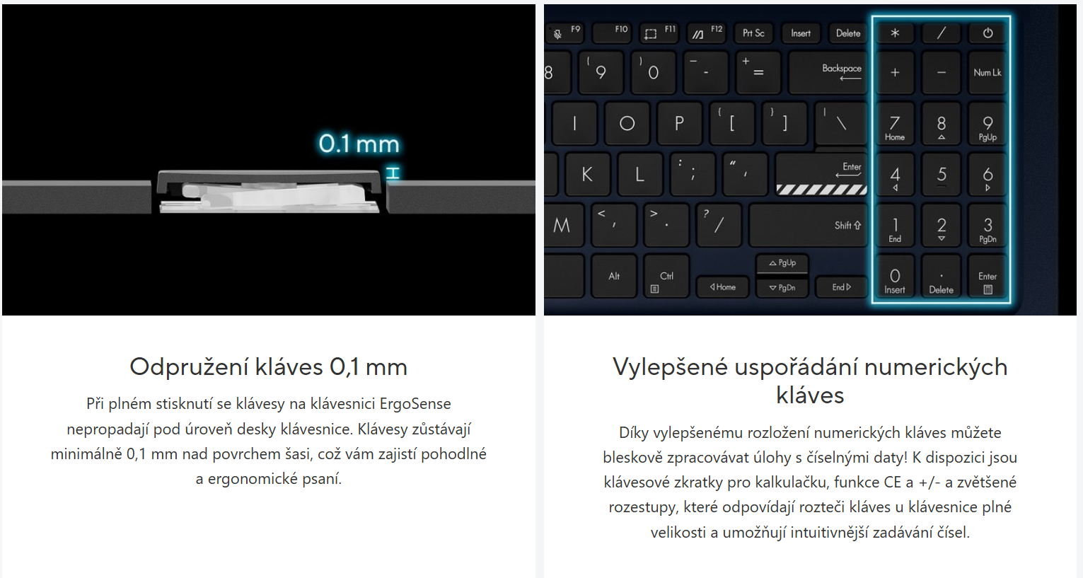 ASUS Vivobook 17 je vybaven ergonomickou klávesnicí a prostorným touchpadem, které zaručují pohodlné psaní a ovládání bez ohledu na to, zda pracujete s dokumenty nebo surfujete na internetu.