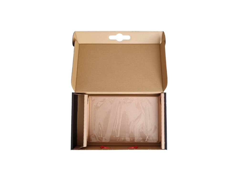 Obal se skládá z kartónového podkladu z 3-vrstvé vlnité lepenky - typ B 3VVL, speciální fólie a kvalitního plastového ucha. Systém fixace spočívá v napnutí fólie okolo předmětu.