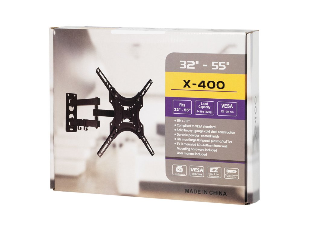 Ideální řešení pro flexibilní uchycení menších televizí. Tento nástěnný držák umožňuje pohodlné naklápění a otáčení obrazovky tak, abyste si mohli nastavit dokonalý úhel sledování. Je vhodný pro televize o velikosti 32″ až 55″ a podporuje VESA standard až 200 × 200 mm. Robustní konstrukce v černém provedení zaručuje dlouhou životnost a bezpečné uchycení.