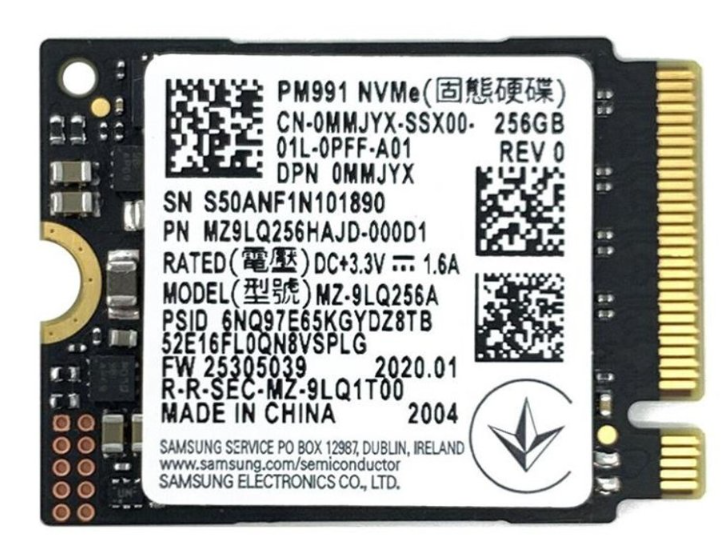 Rychlé úložiště pro svižný chod systému. Tento SSD disk nabízí kapacitu 256 GB a využívá rozhraní NVMe. Formát M.2 2230 usnadňuje instalaci do kompatibilních zařízení.