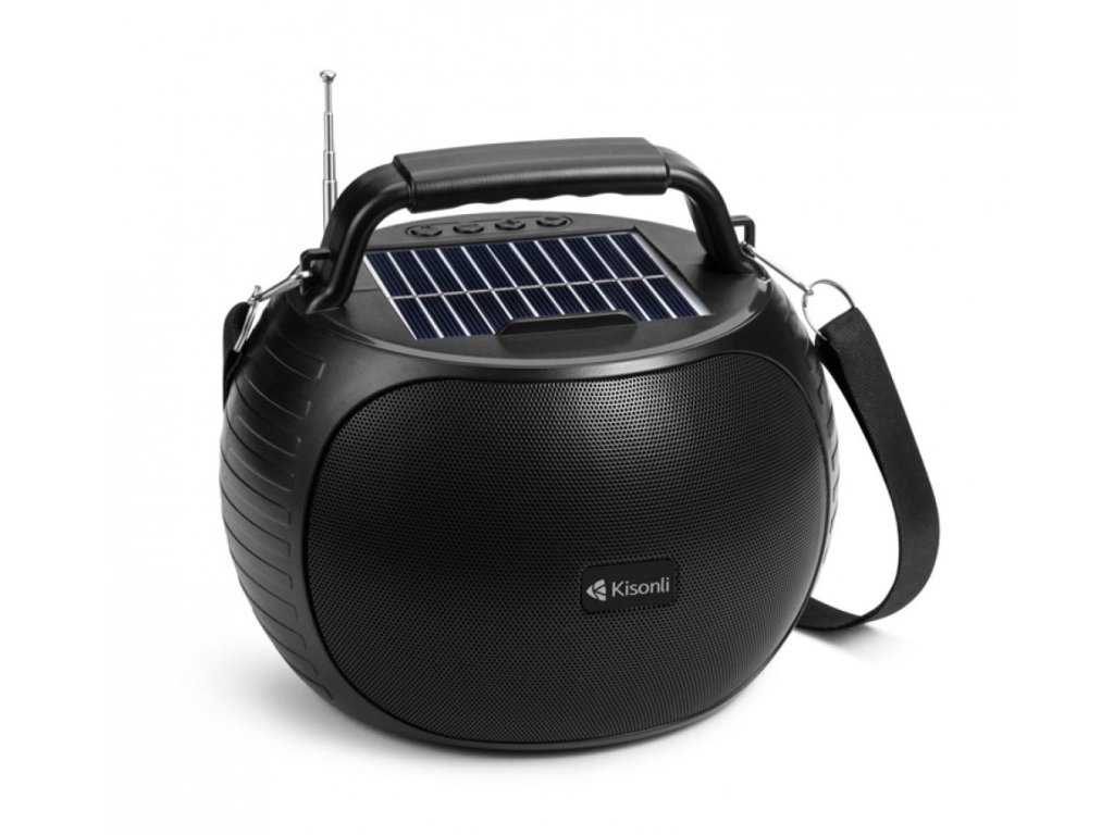 Solární reproduktor Kisonli SC-22, Bluetooth, USB, SD, AUX – černá
