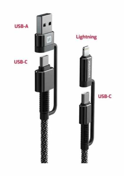 Kabel je kompatibilní s širokým spektrem zařízení díky konektorům USB-C a Lightning. Je dodáván v praktickém blistru SWISSTEN, což usnadňuje jeho skladování a přenášení.