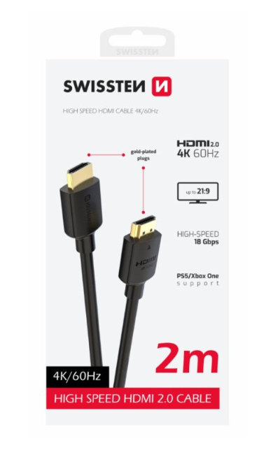Swissten HDMI kabel je skvělou volbou pro připojení moderních zařízení, která vyžadují vysoké rozlišení a stabilní přenos dat. Díky délce 2 metry nabízí flexibilitu při zapojení a odolné provedení zajišťuje spolehlivost při dlouhodobém používání.