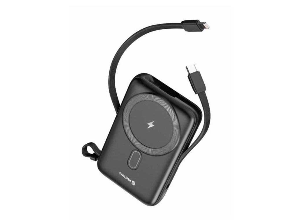 Swissten Powerbanka PD 20W 10000 mAh, MagSafe s integrovanými kabely USB-C a Lightning PN: 22013933