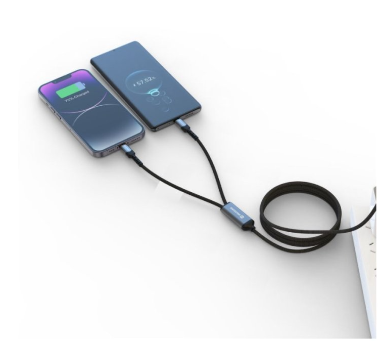 Kabel umožňuje rychlé dobíjení dvou zařízení najednou a optimalizuje výkon pro maximální bezpečnost. Spolehlivý pomocník doma, v kanceláři i na cestách.