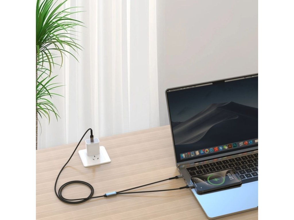 Kabel umožňuje rychlé dobíjení dvou zařízení najednou a optimalizuje výkon pro maximální bezpečnost. Spolehlivý pomocník doma, v kanceláři i na cestách.