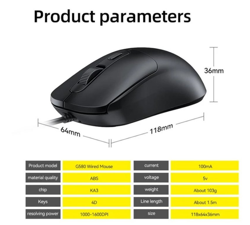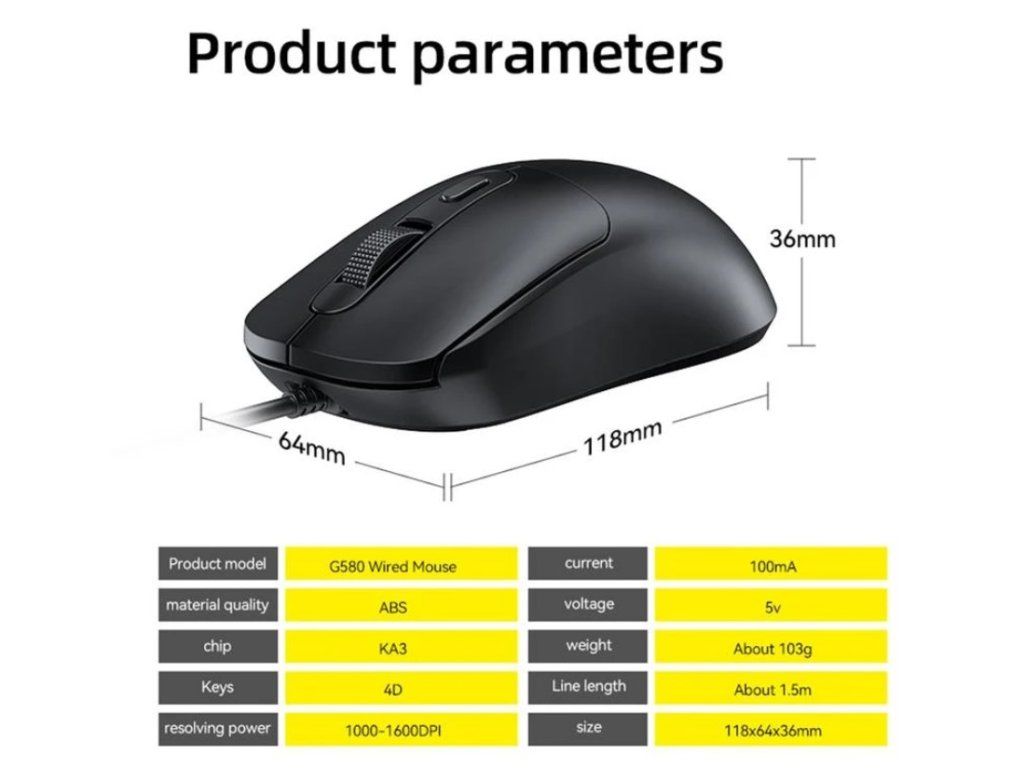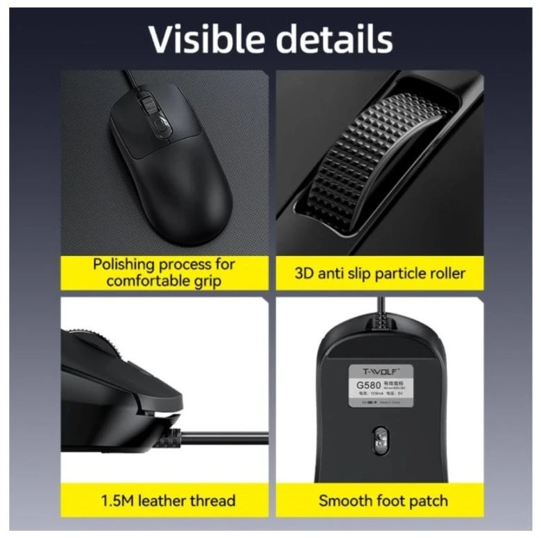 Jednoduchá a spolehlivá myš pro každodenní použití. T-Wolf G580 je klasická drátová myš určená pro běžnou práci na počítači i domácí použití. Díky stabilnímu USB připojení nabízí okamžitou odezvu bez nutnosti instalace.