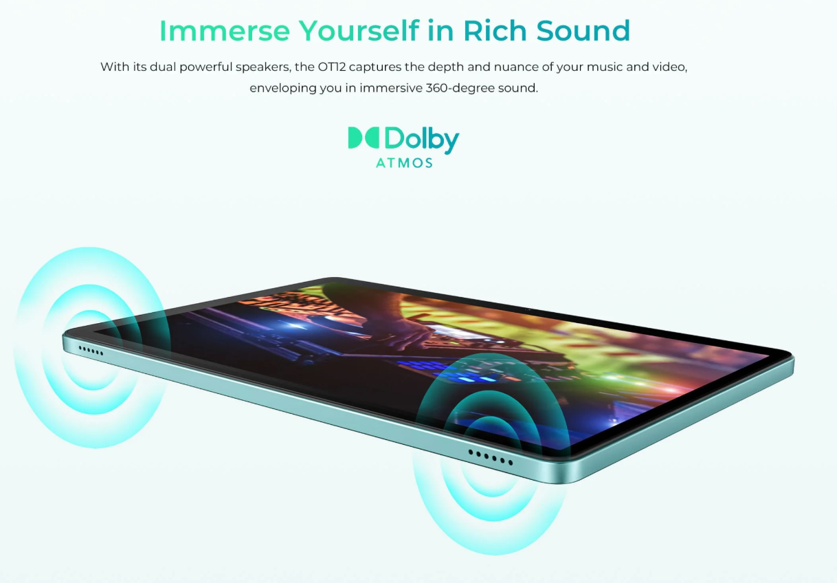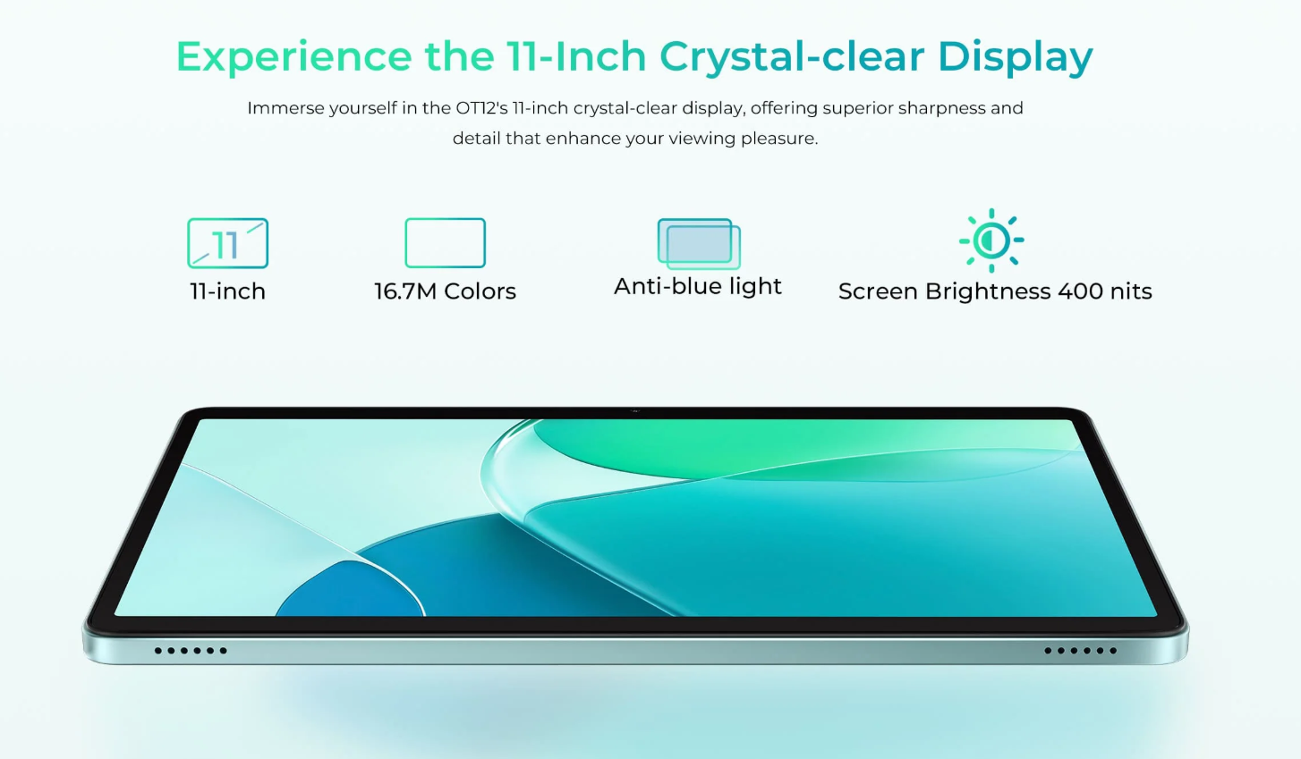 Oukitel OT12 zaujme tenkým profilem a relativně nízkou hmotností, což usnadňuje každodenní přenášení a používání doma i na cestách. Konstrukce s kovovým prvkem působí moderně a zároveň prakticky, což je v této kategorii zařízení příjemným benefitem pro uživatele, kteří chtějí stylový, ale dostupný tablet.