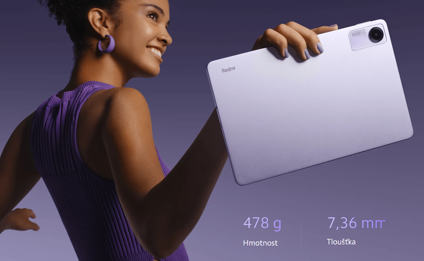 Redmi Pad SE zaujme kovovým jednodílným tělem, které působí elegantně, moderně a zároveň odolně. Tenký profil a vyvážené proporce zajišťují pohodlné držení v ruce a snadné přenášení mezi místnostmi nebo na cestách.