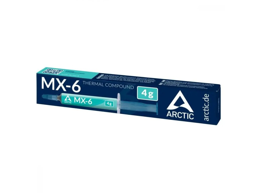Nová generace teplovodivé pasty pro efektivní chlazení. ARCTIC MX-6 je kvalitní teplovodivá pasta navržená pro zlepšení přenosu tepla mezi čipem a chladičem. Vychází z jedné z nejoblíbenějších past Arctic MX-4 a přináší optimalizované vlastnosti pro stabilní a spolehlivý provoz moderních komponent.