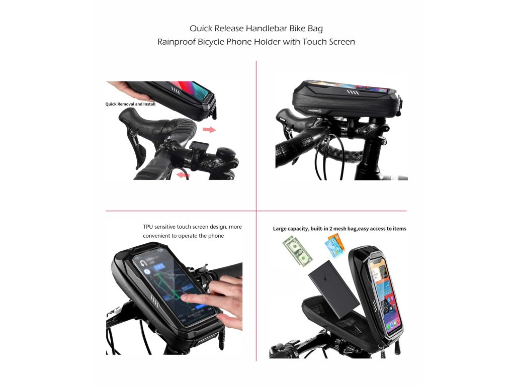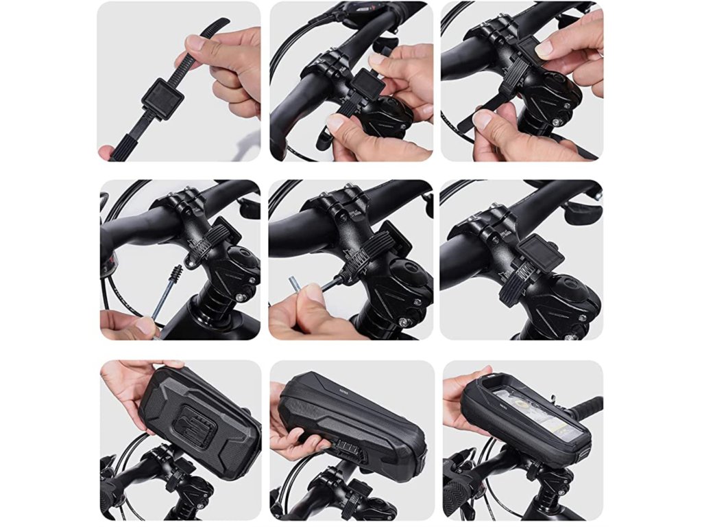 Bezpečné Uchycení: Systém uchycení zajišťuje pevné a bezpečné připevnění pouzdra na řídítka nebo představec. Během přestávky nebo zastavení lze pouzdro snadno uvolnit pomocí páčky a vzít s sebou.