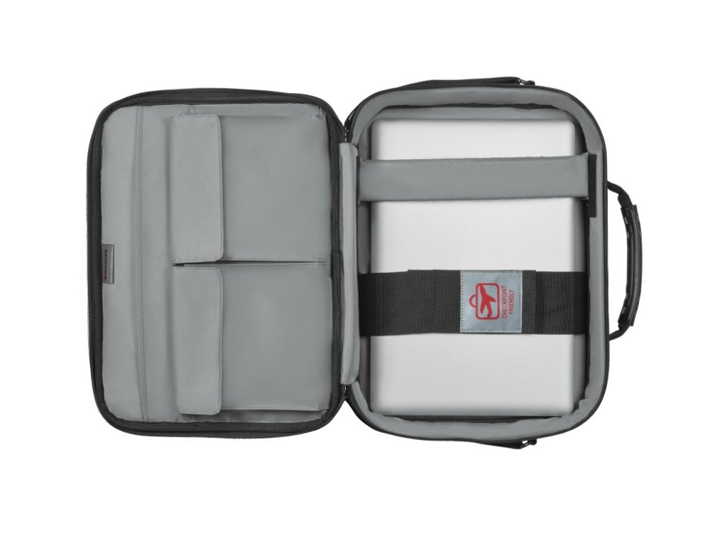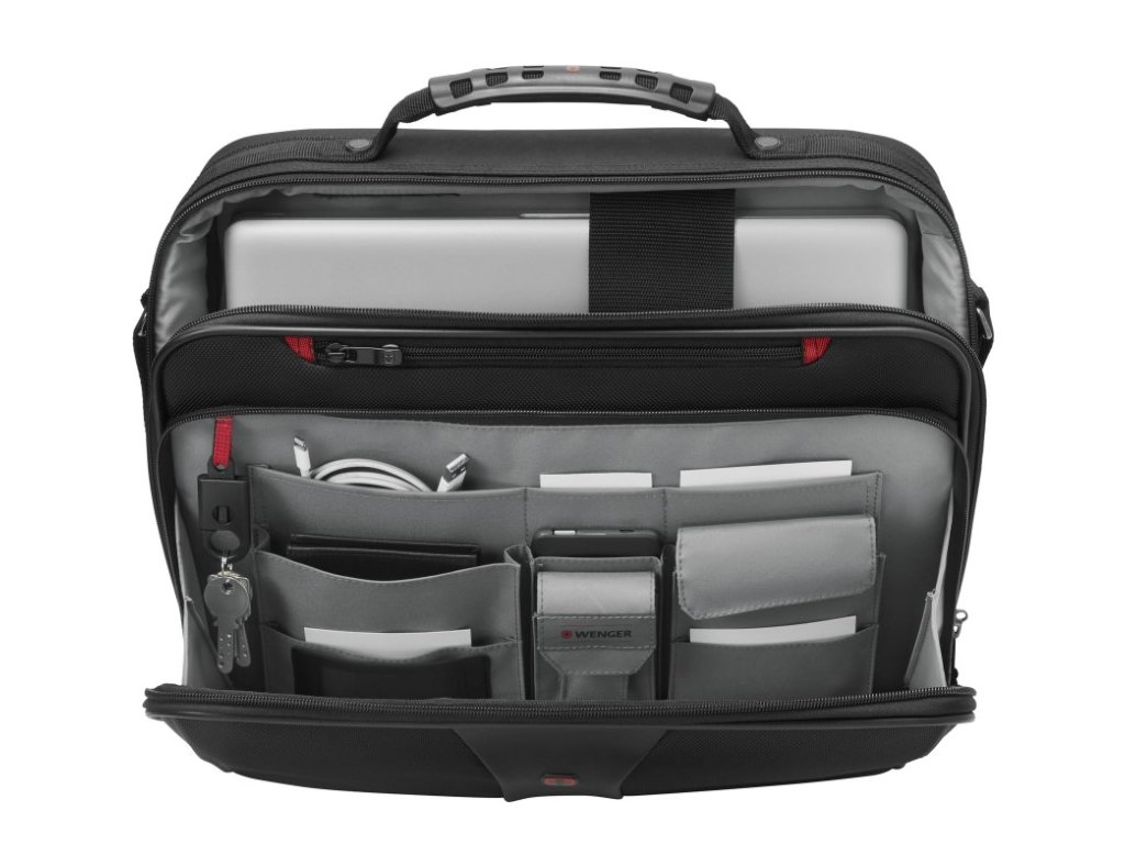 Díky inteligentnímu systému uspořádání kapes nabízí brašna Wenger Legacy dostatek prostoru pro notebook, dokumenty i doplňky. Přední kapsa s rychlým přístupem umožňuje mít všechny nezbytnosti po ruce, zatímco zadní oddíl se dá rozepnout až ke dnu – ideální při letištních kontrolách.