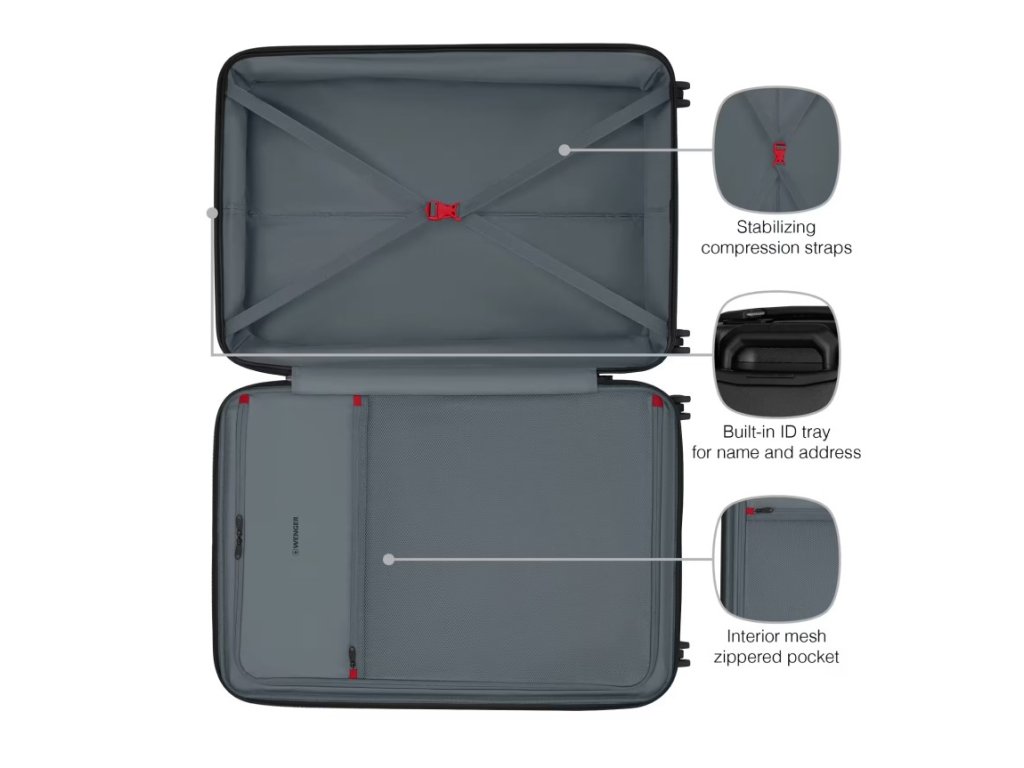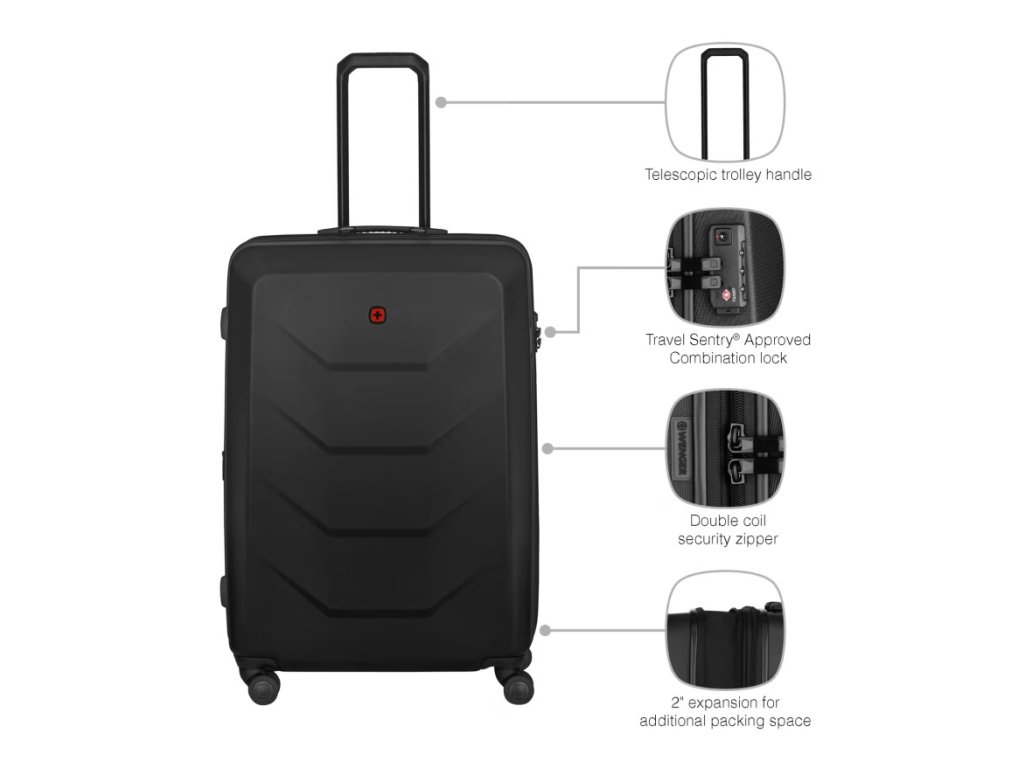 Wenger Prymo L je vybaven kombinovaným zámkem Travel Sentry®, který umožňuje bezpečnou kontrolu zavazadla bez jeho poškození. Spolu s dvojitým bezpečnostním zipem chrání obsah kufru před nechtěným otevřením během přepravy a poskytuje klid při cestování letadlem i jinými dopravními prostředky.