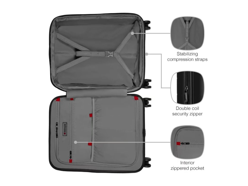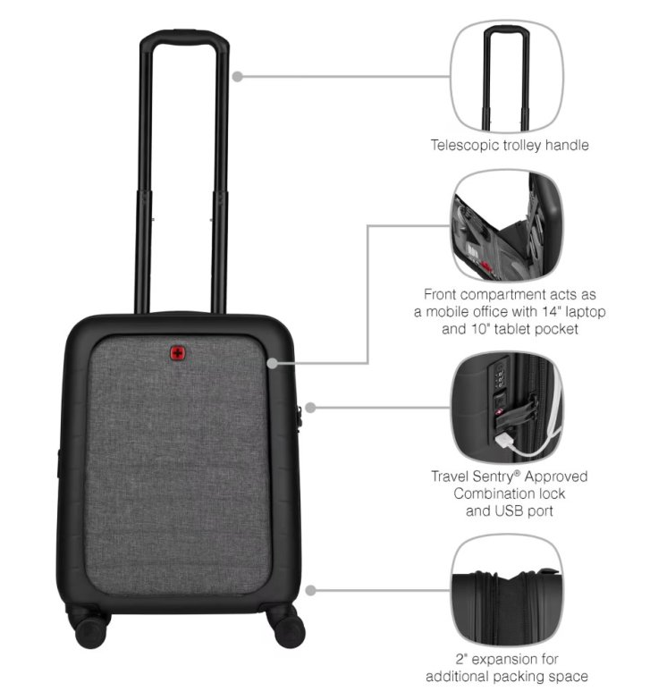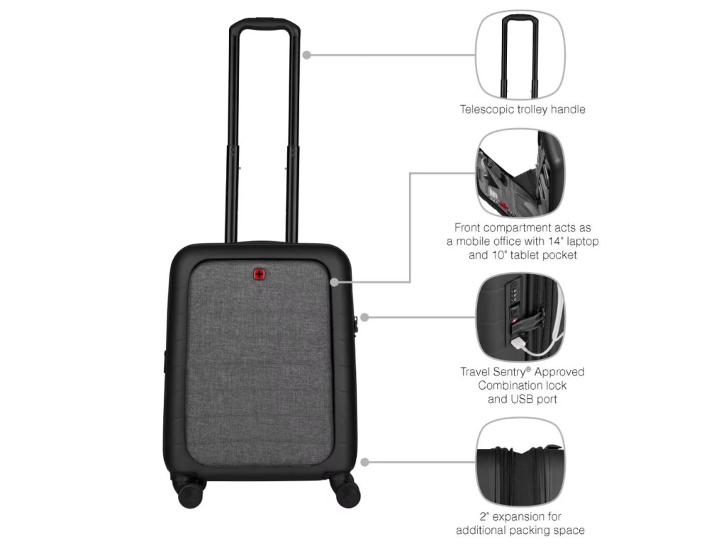 Wenger Syntry S je moderní příruční kufr navržený pro cestovatele, kteří potřebují mít pracovní techniku, osobní věci i pohodlí vždy po ruce. Kombinuje kompaktní rozměry vhodné na palubu letadla s chytrými funkcemi, které z něj dělají ideální zavazadlo pro pracovní cesty, krátké pobyty i každodenní přesuny mezi městy.
